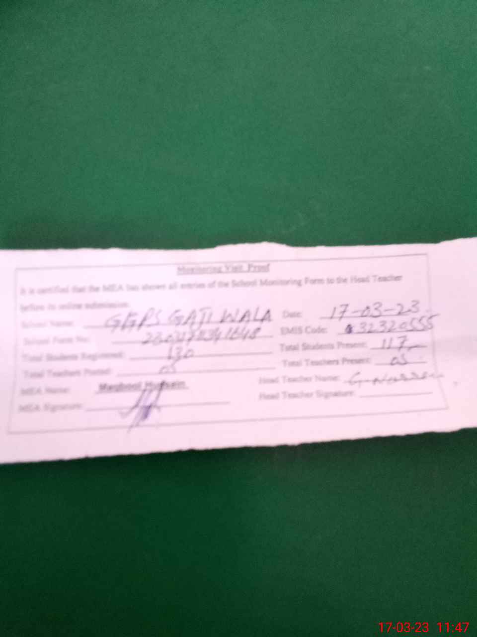 | EMIS Code: 32320555 | Name of School: GGPS GAJI WALA | |||