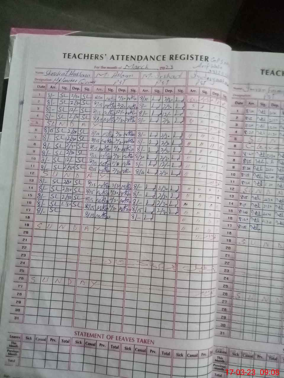 | Name: MU**** IR**** Designation: (School Headmaster's/Headmistress's) PST Phone/Cell Number: 03**** |