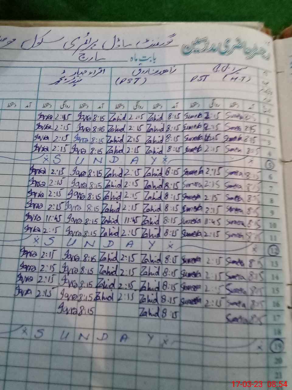 | Name: SU**** BI**** Designation: (School Headmaster's/Headmistress's) PST Phone/Cell Number: 03**** |