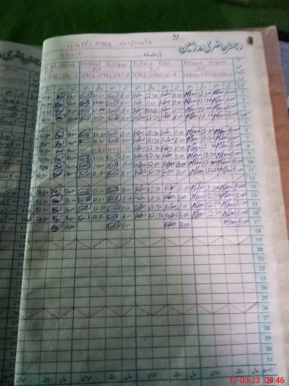 | CNIC | Full Name | Designation | R/C | Absence During Last Calender Month |