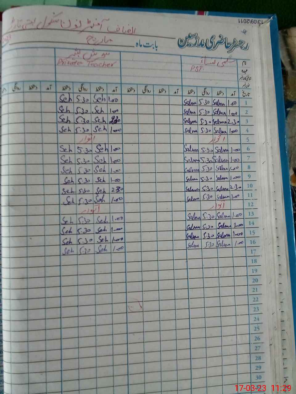 | Name: SA**** NI**** Designation: (School Headmaster's/Headmistress's) PST Phone/Cell Number: 03**** |
