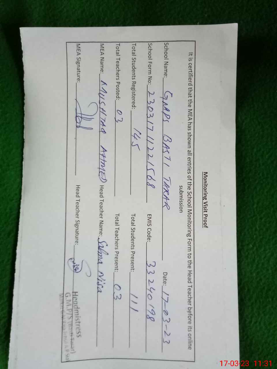 | EMIS Code: 33240198 | Name of School: GMPS BASTI TARAR | |||