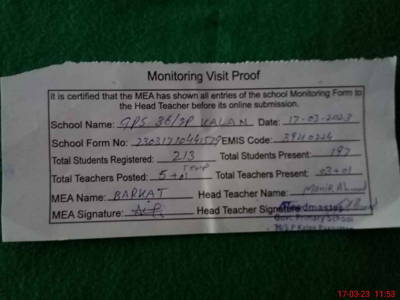 | EMIS Code: 39210224 | Name of School: GPS CHAK NO. 36 SP KALAN | |||