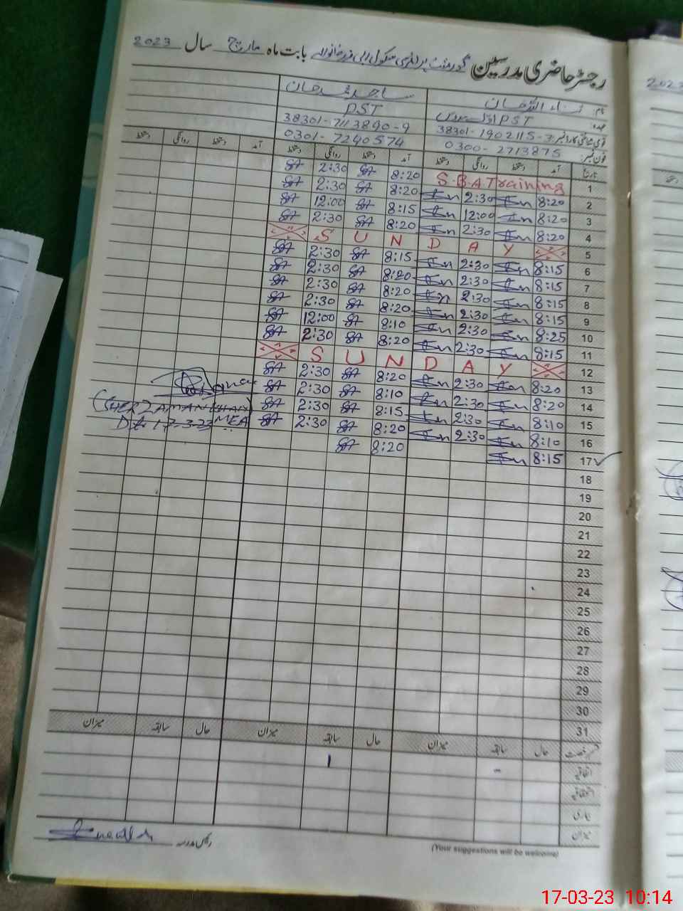 | Name: Sa**** Mu**** Kh**** Designation: (School Headmaster's/Headmistress's) PST Phone/Cell Number: 03**** |