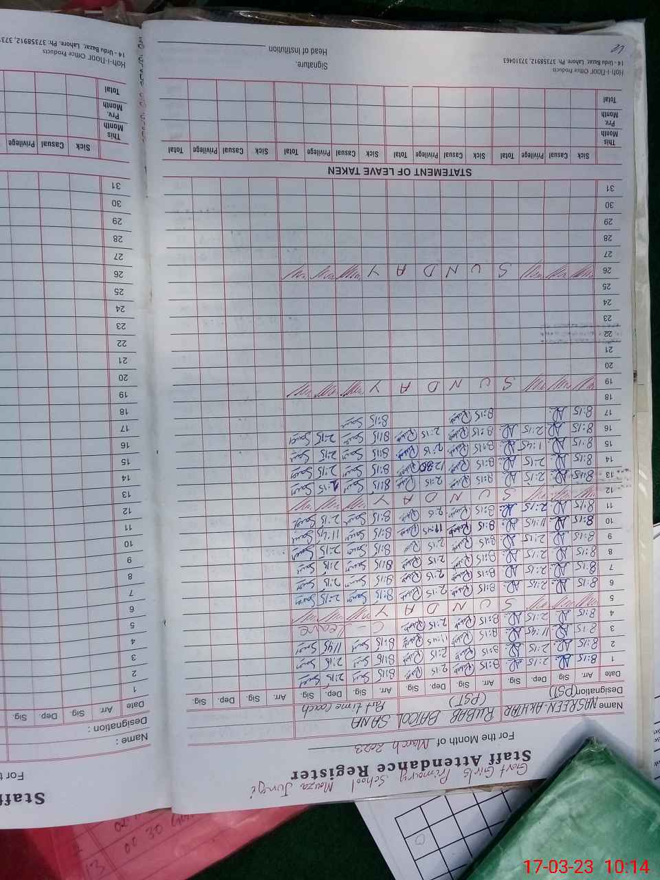 | Name: Na**** Ak**** Designation: (School Headmaster's/Headmistress's) PST Phone/Cell Number: 03**** |