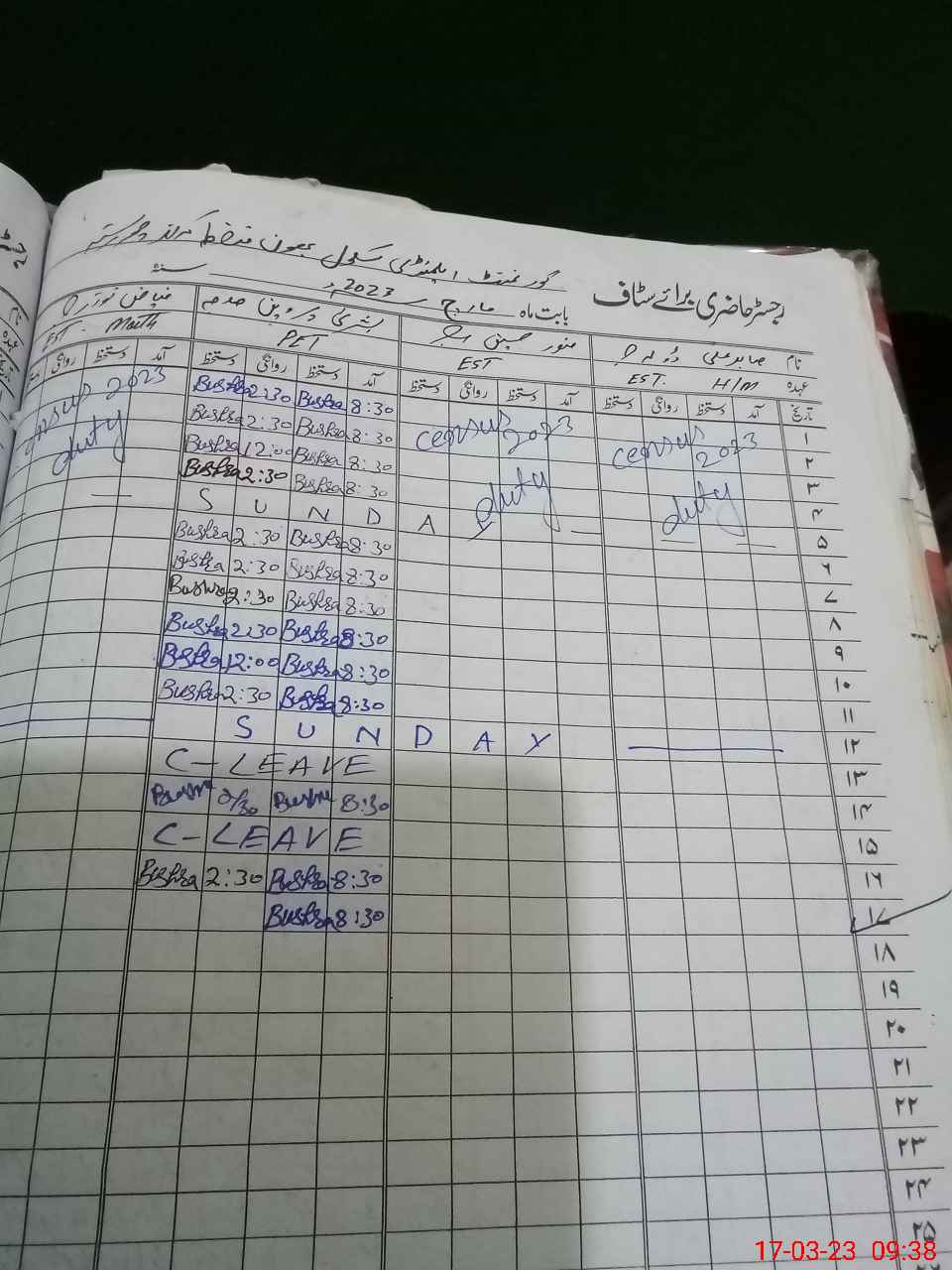 | Leave | Duty | Absent | Maternity | Medical | Ex- Pak |