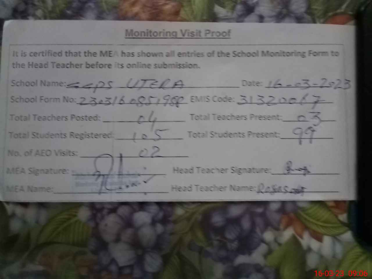 | EMIS Code: 31320067 | Name of School: GGPS UTERA | |||