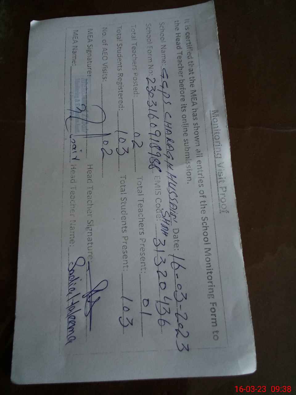 | EMIS Code: 31320436 | Name of School: GGPS CHARAGH HUSSAIN SHAH | |||