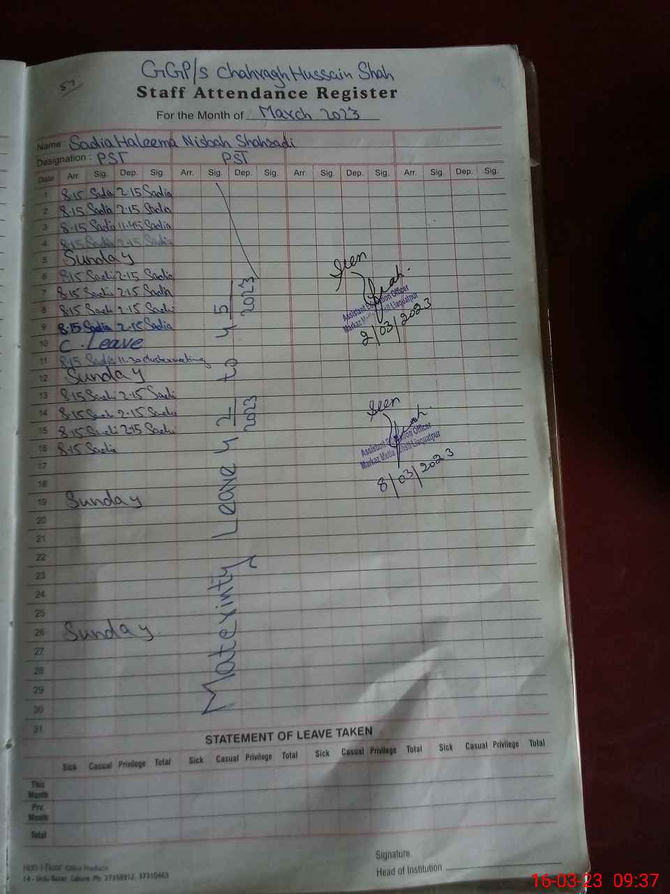 | 33**** | Ni**** Sh**** | PST | Regular | 24 | 0 | 0 | 24 | 0 | 0 | 0 | 0 | 0 | Maternity |