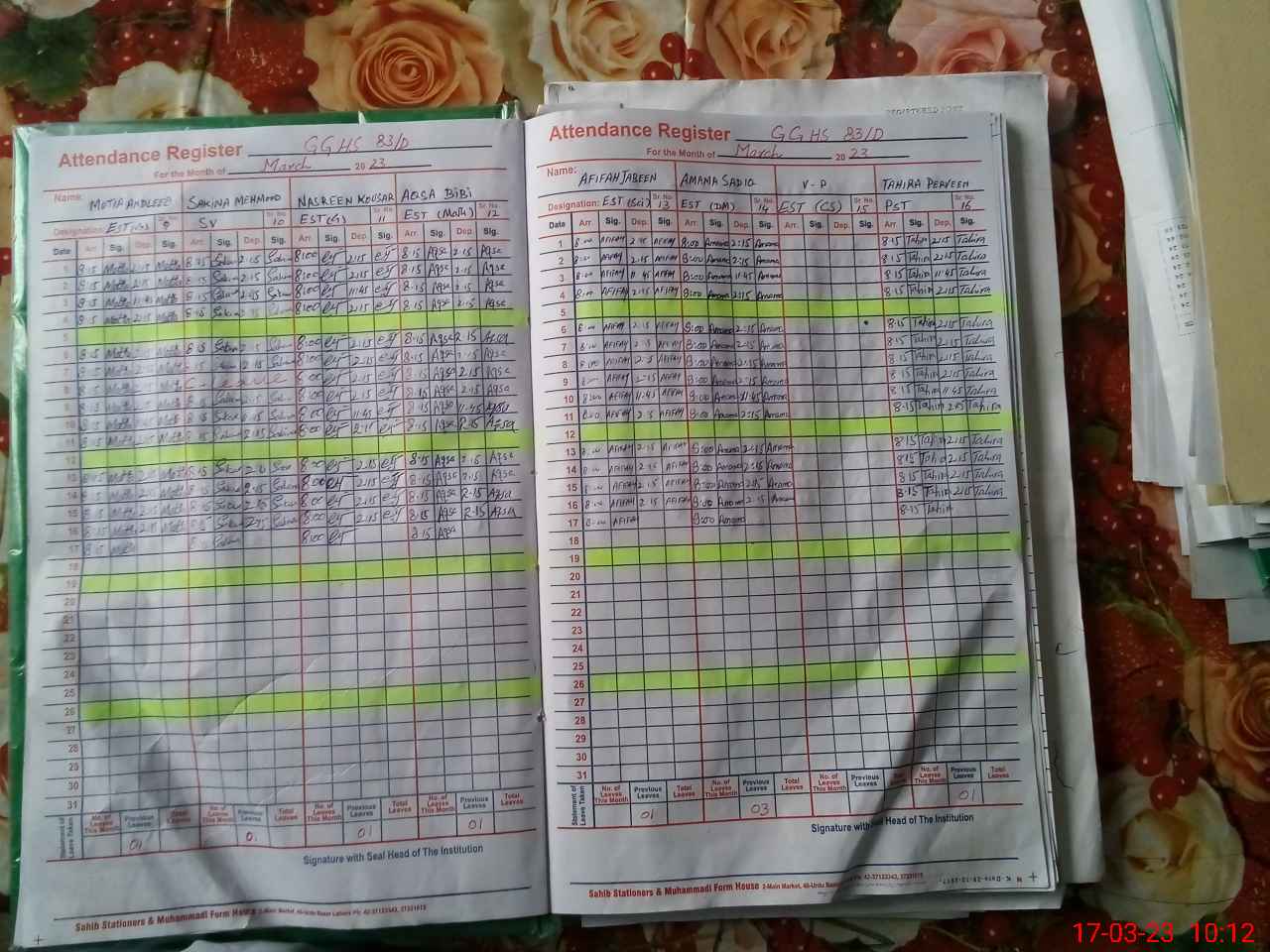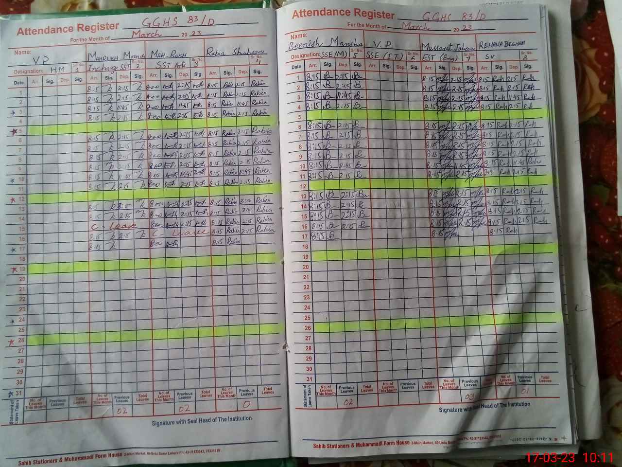 | CNIC | Full Name | Designation | R/C | Absence During Last Calender Month |