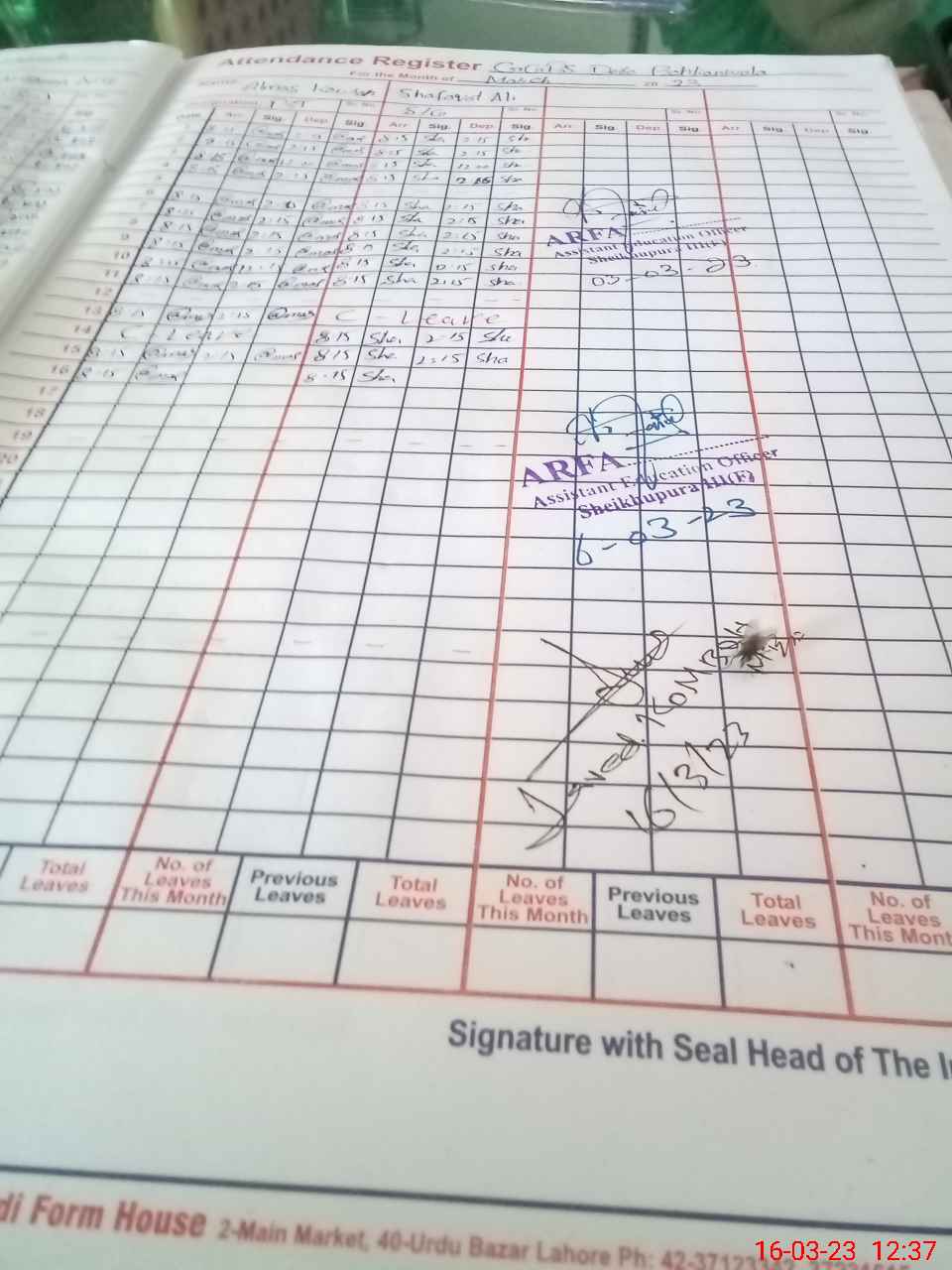| Name: AZ**** PE**** Designation: (School Headmaster's/Headmistress's) PST Phone/Cell Number: 03**** |