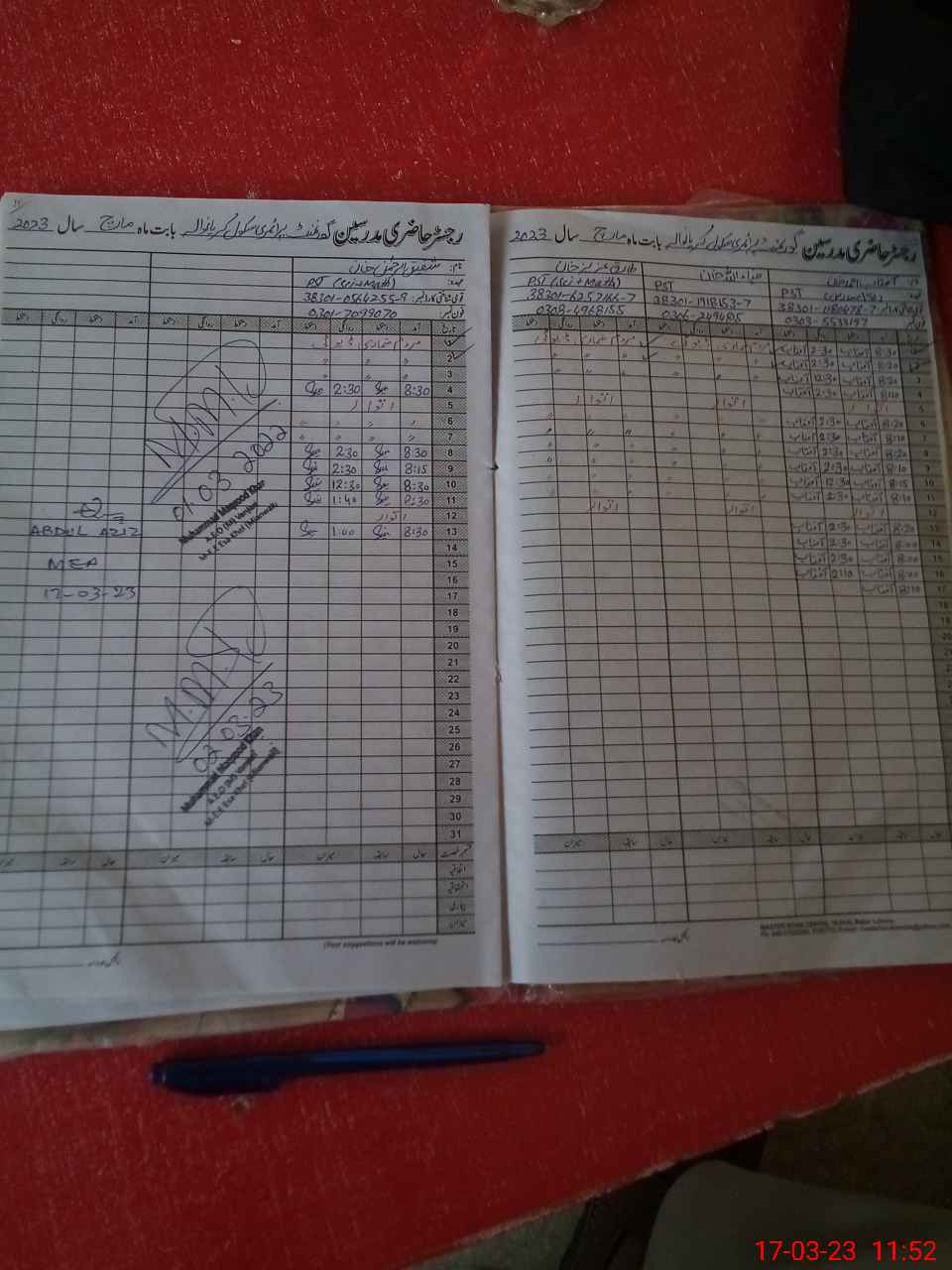 | Name: AF**** AH**** KH**** Designation: (School Headmaster's/Headmistress's) PST Phone/Cell Number: 03**** |