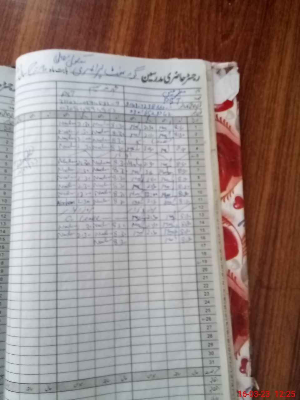 | CNIC | Full Name | Designation | R/C | Absence During Last Calender Month |