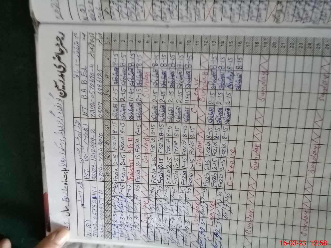 | CNIC | Full Name | Designation | R/C | Absence During Last Calender Month |