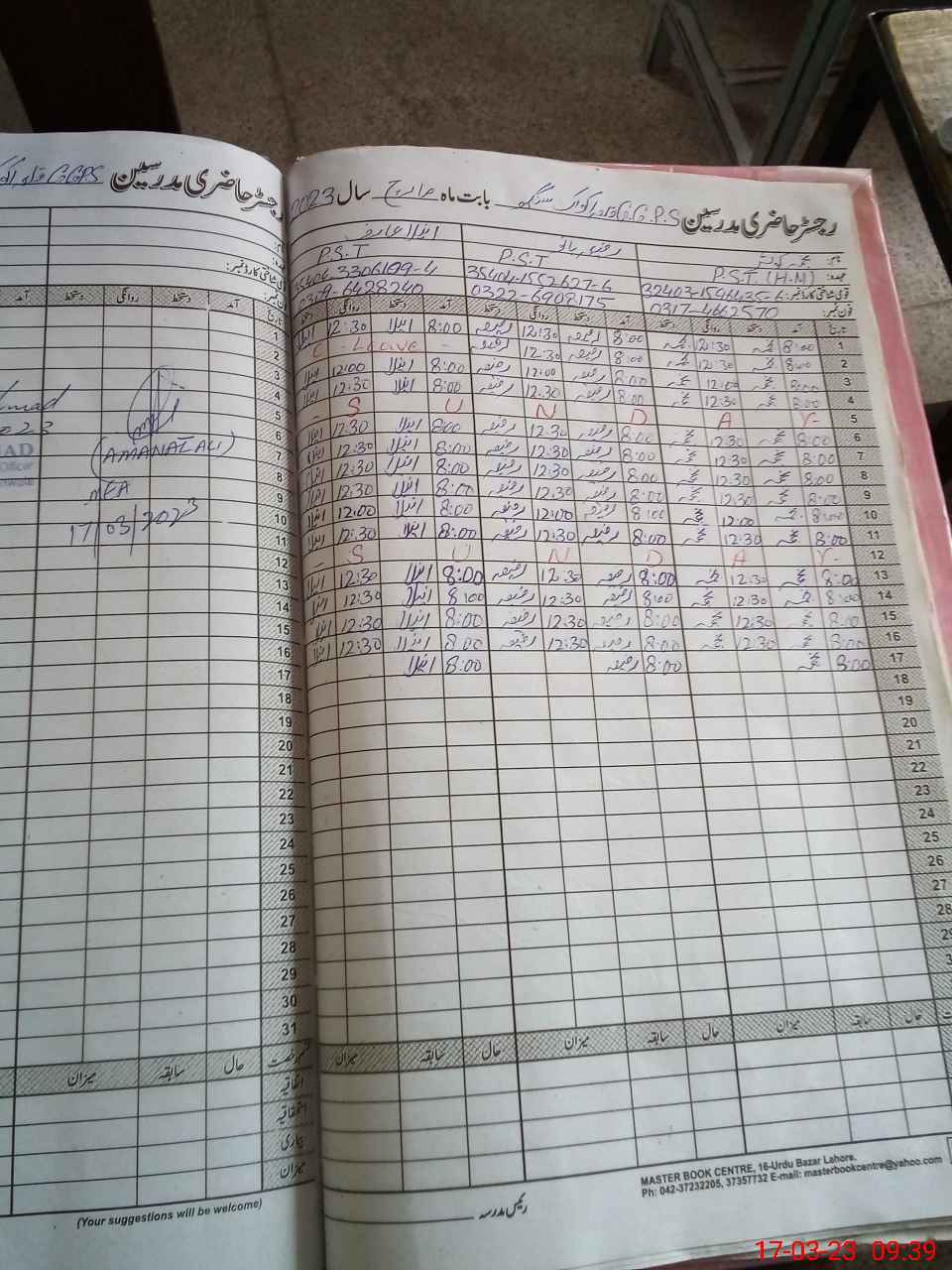 | Name: An**** Ar**** Designation: (School Headmaster's/Headmistress's) PST Phone/Cell Number: 03**** |