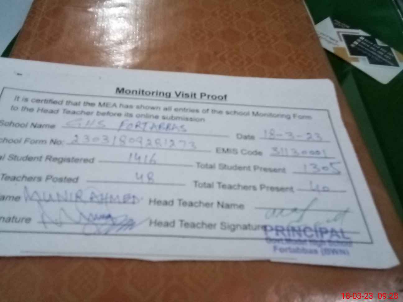 | EMIS Code: 31130001 | Name of School: GHS FORT ABBAS | |||