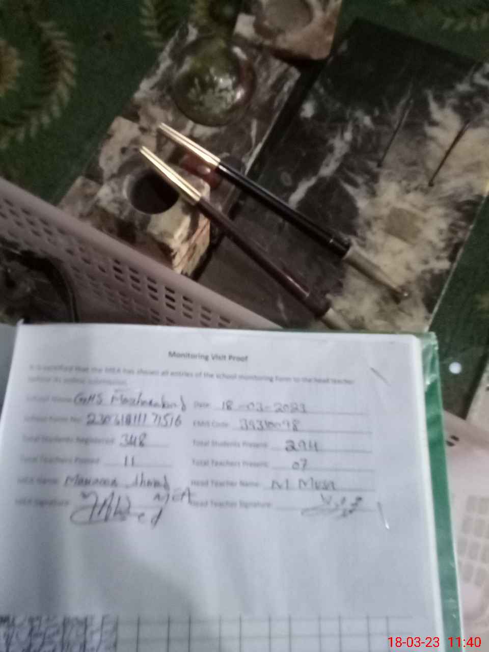 | Attendance Register | Head Teacher | MEA with School | Visit Proof |