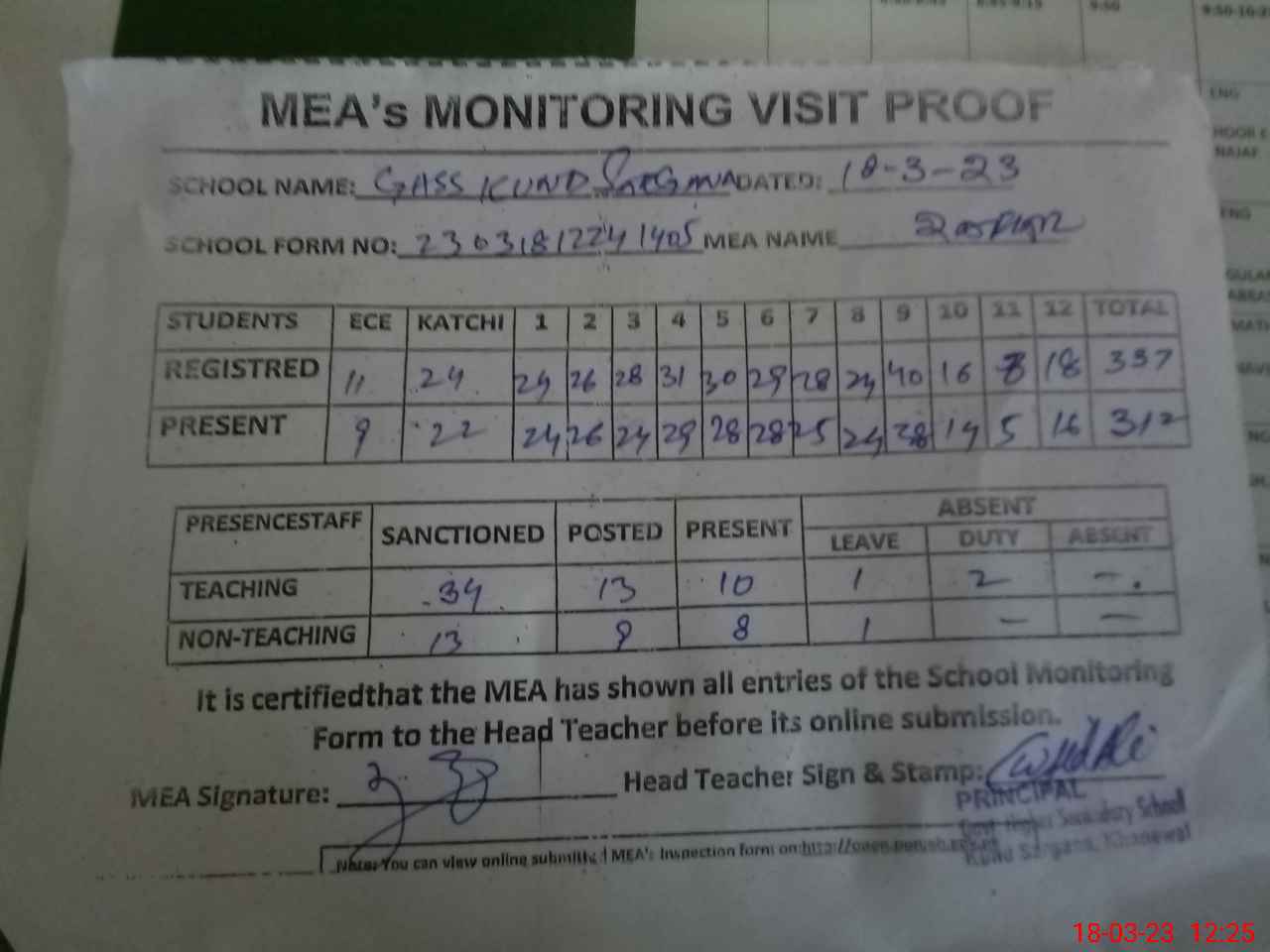 | EMIS Code: 36410228 | Name of School: GHSS KUND SARGANA, SARAI SIDHU | |||