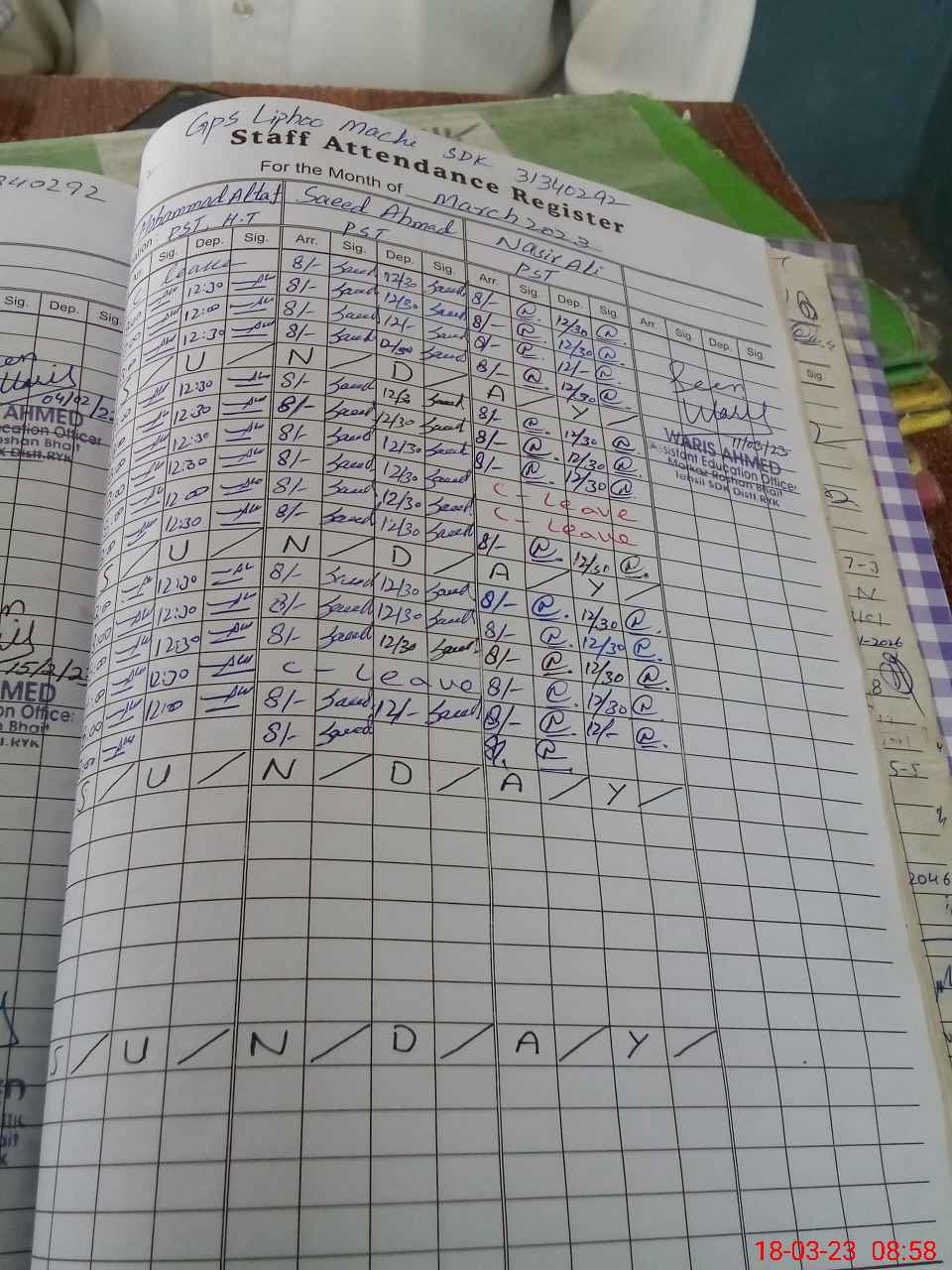 | Name: Mu**** Al**** Designation: (School Headmaster's/Headmistress's) Pst Phone/Cell Number: 03**** |