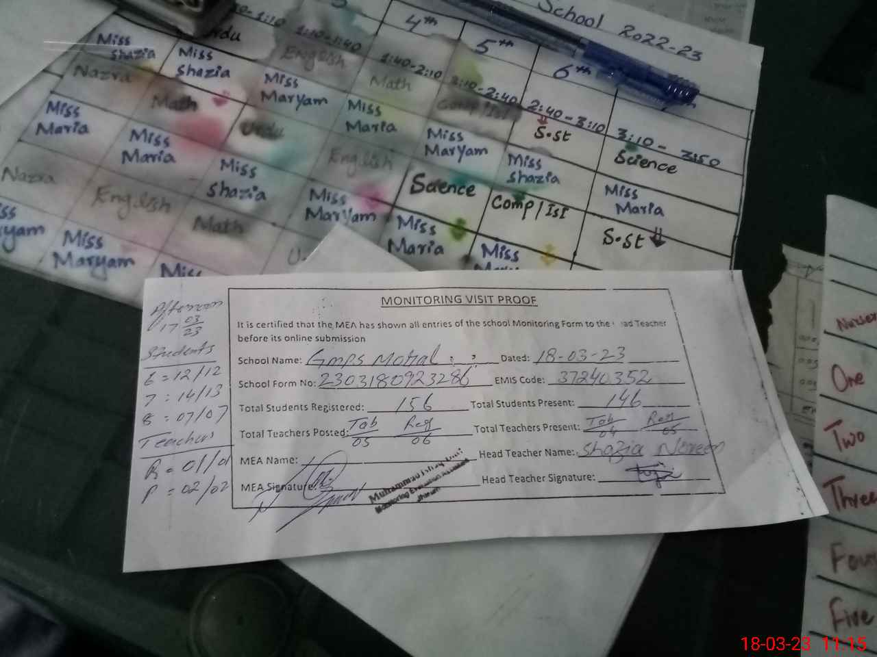 | EMIS Code: 37240352 | Name of School: GMPS MOHAL | |||