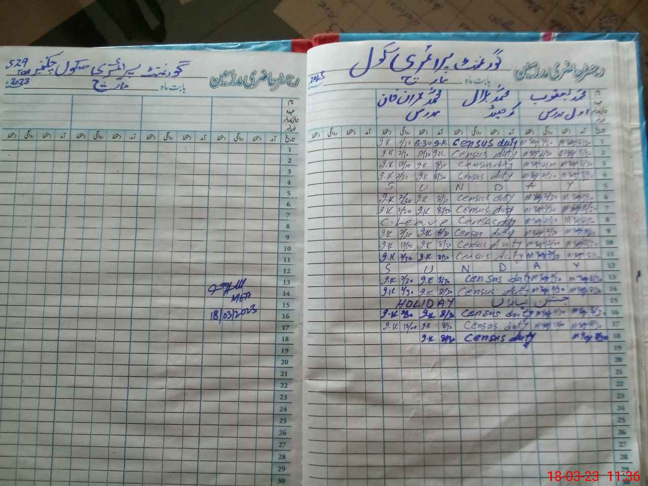 | CNIC | Full Name | Designation | R/C | Absence During Last Calender Month |