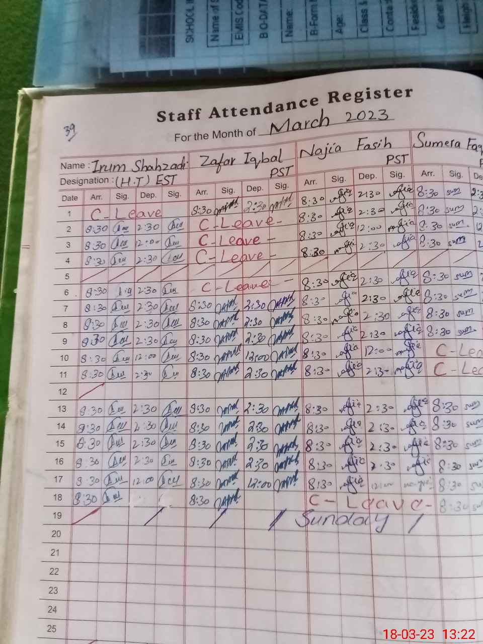 | Name: Er**** Sh**** Designation: (School Headmaster's/Headmistress's) EST Phone/Cell Number: 03**** |