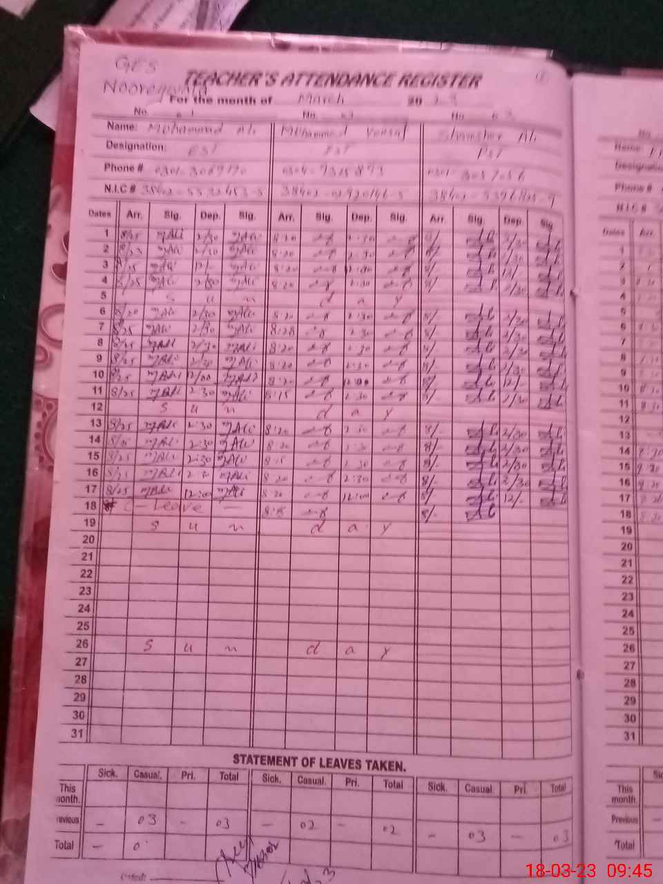 | Name: MU**** AL**** Designation: (School Headmaster's/Headmistress's) EST (GENRAL) Phone/Cell Number: 03**** |