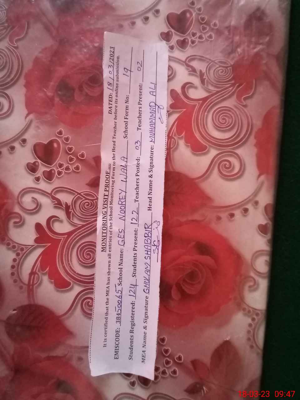 | EMIS Code: 38450065 | Name of School: GES NOOREY WALA | |||