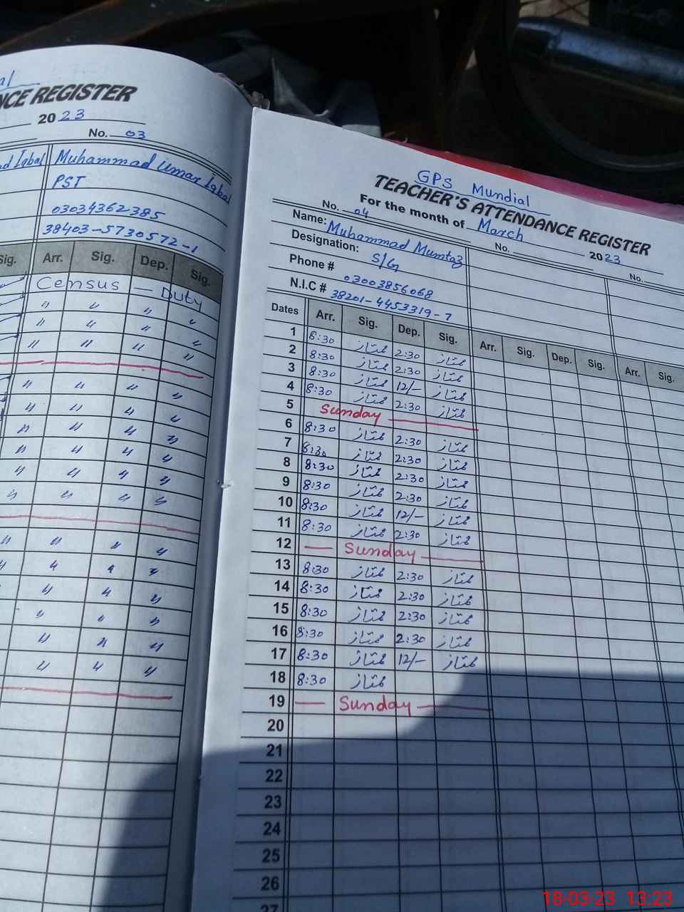 | Name: MU**** IS**** Designation: (School Headmaster's/Headmistress's) PST Phone/Cell Number: 03**** |
