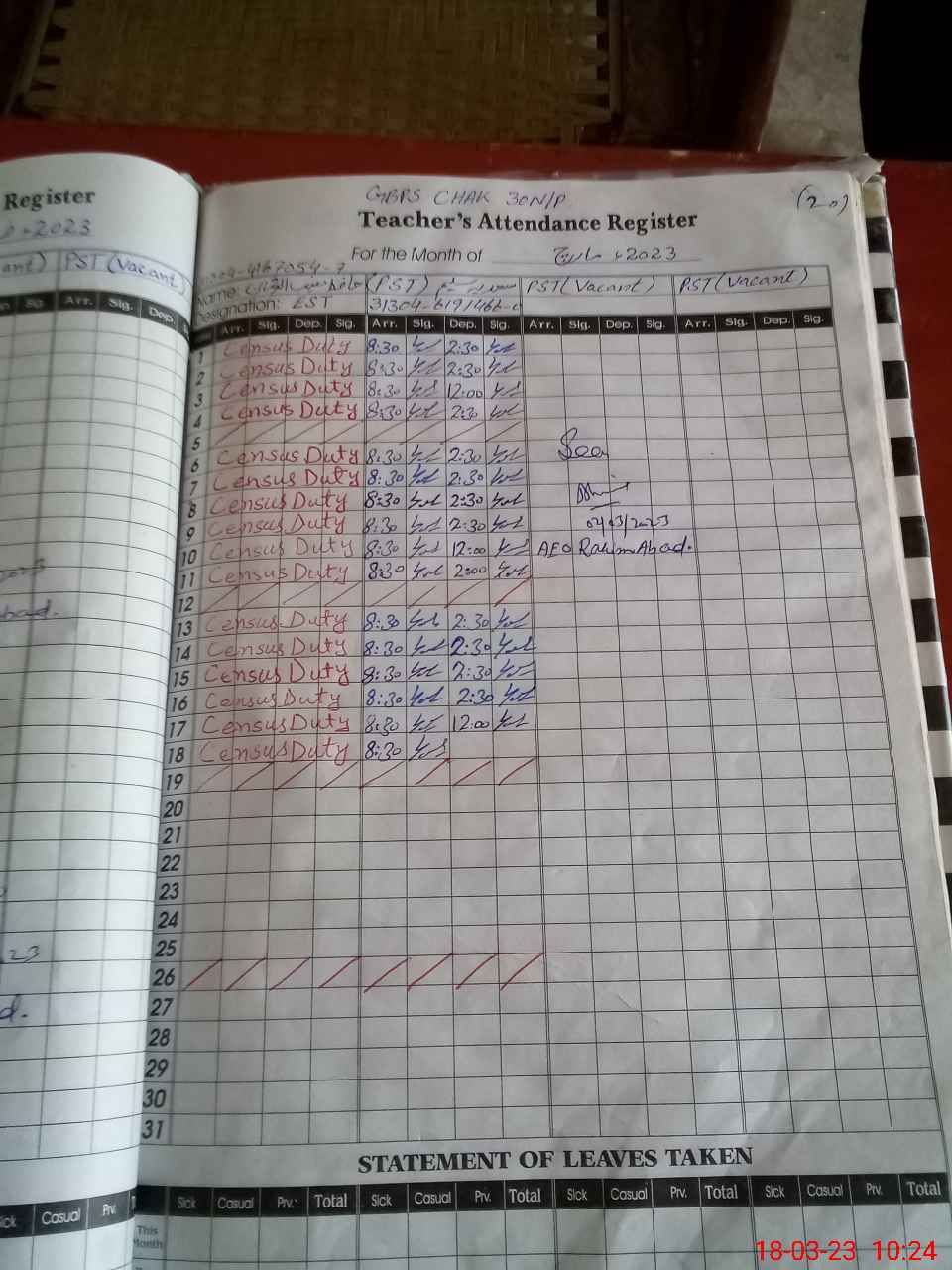 | Name: Sa**** Sa**** Designation: (School Headmaster's/Headmistress's) PST Phone/Cell Number: 03**** |
