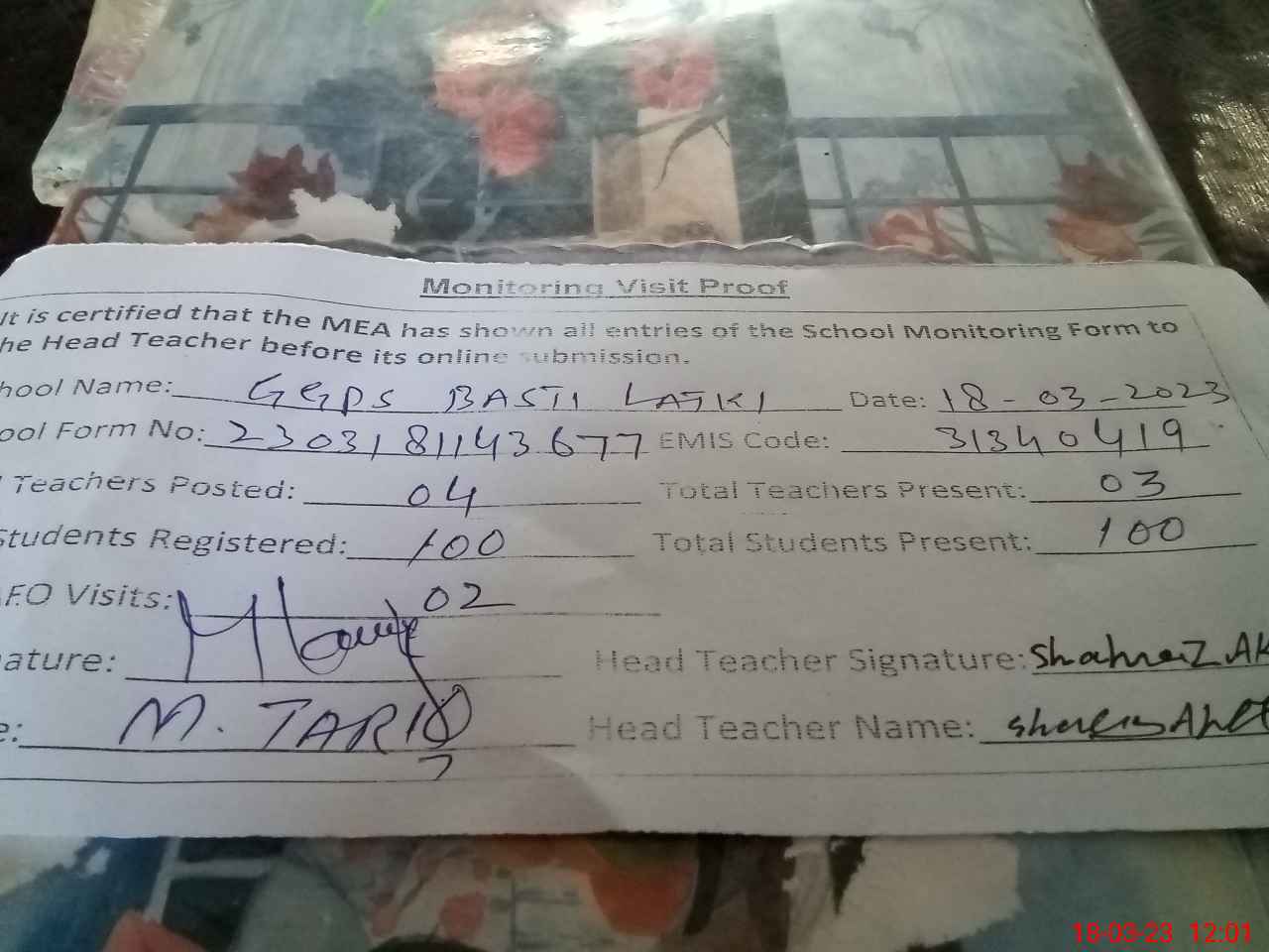 | Certified that this School was Inspected by the Undersigned MEA/DMO Today and the Information Stated Above is as Per Record. | |||||