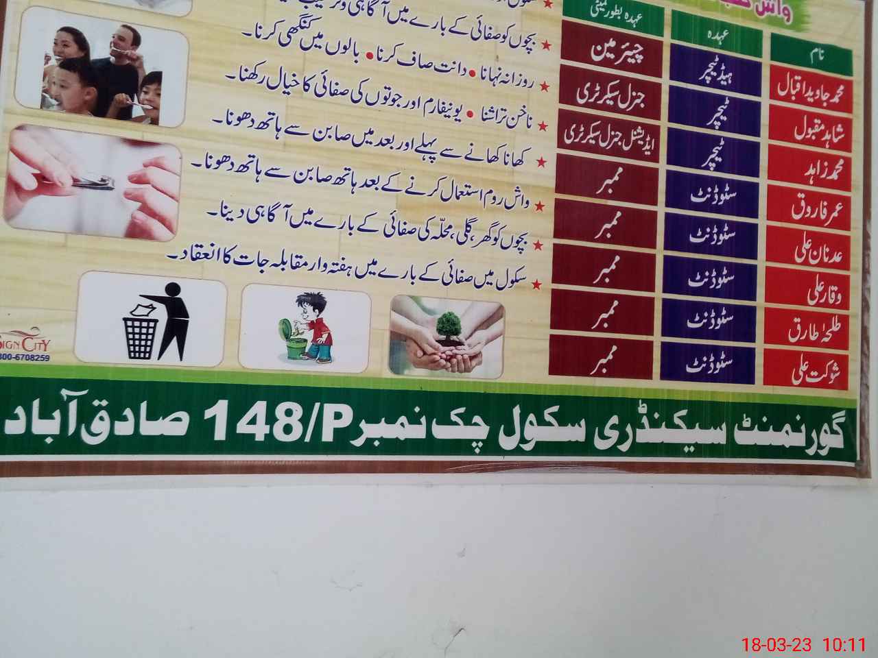 | EMIS Code: 31340007 | Name of School: GHS CHAK NO. 148/P | |||