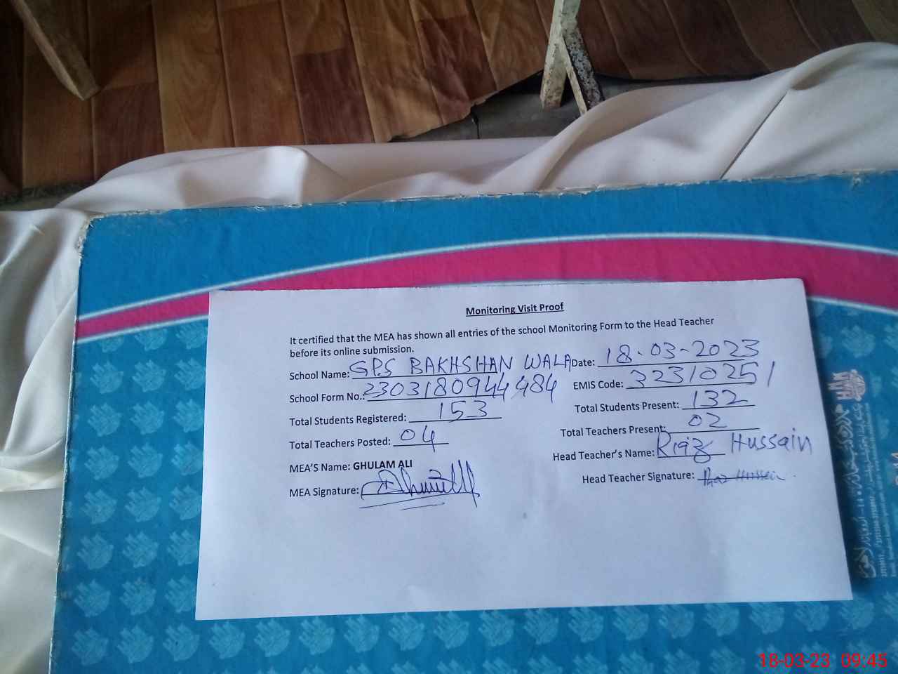 | EMIS Code: 32310251 | Name of School: GPS BAKHSHAN WALA | |||