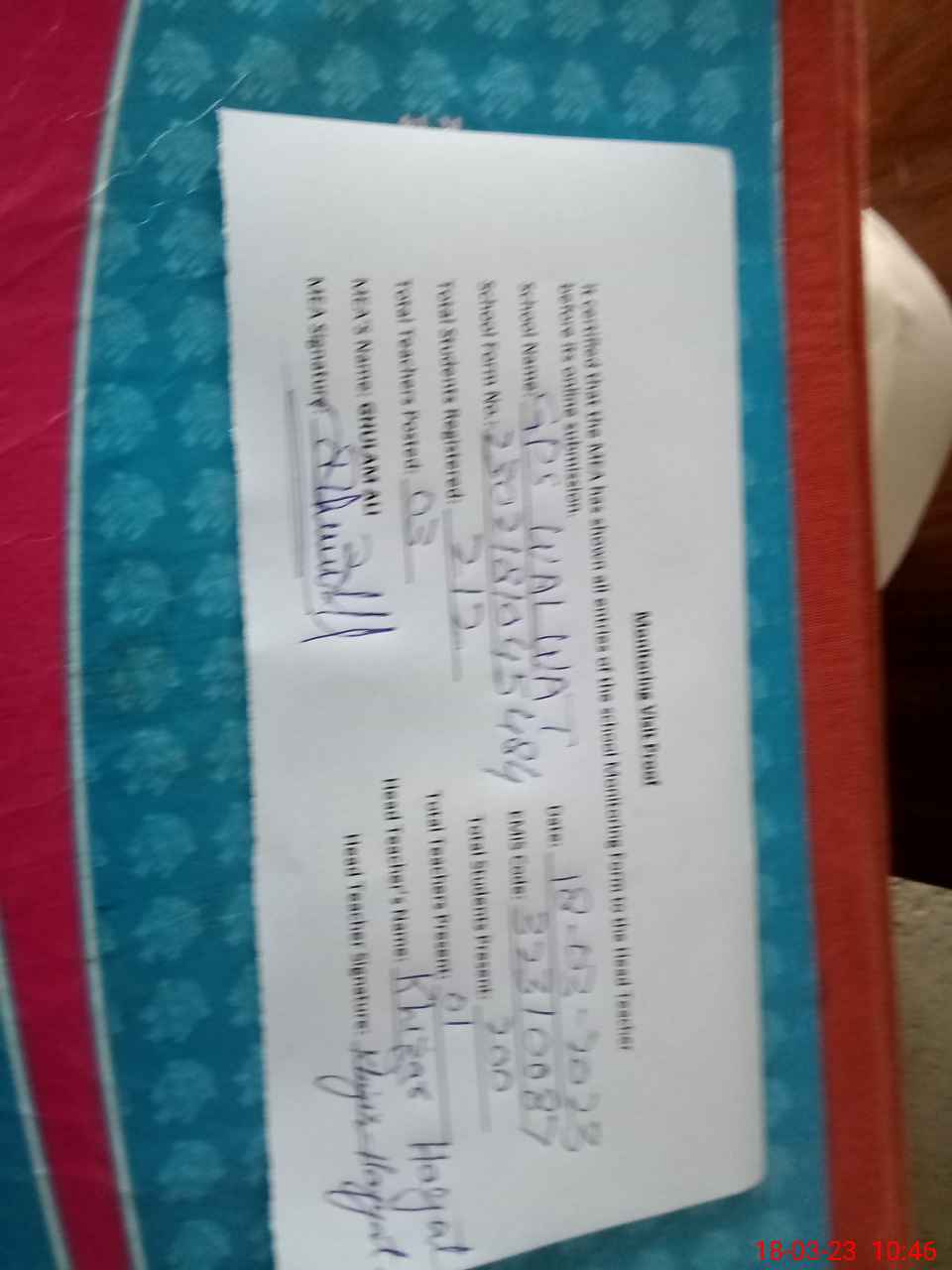 | EMIS Code: 32310087 | Name of School: GPS WALWAT | |||