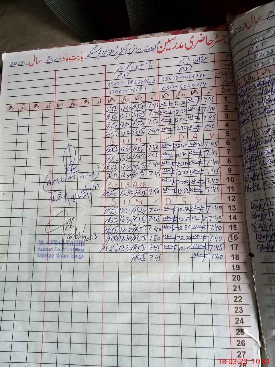| Name: MU**** AS**** Designation: (School Headmaster's/Headmistress's) PST Phone/Cell Number: 03**** |