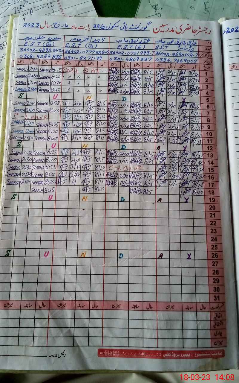 | Name: Sy**** Ma**** Al**** Sh**** Designation: (School Headmaster's/Headmistress's) HM ( OPS) Phone/Cell Number: 03**** |