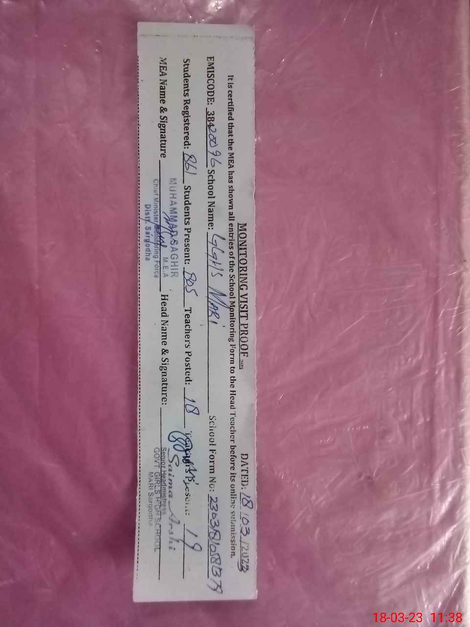 | EMIS Code: 38420096 | Name of School: GGHS MARI | |||