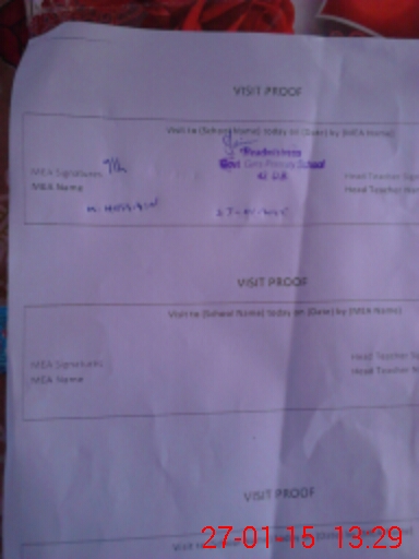 | Attendance Register | Head Teacher | MEA with School | Visit Proof |