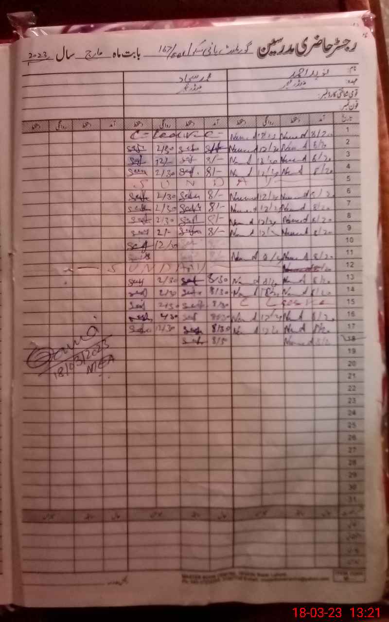 | Name: SA**** URRE**** Designation: (School Headmaster's/Headmistress's) H M Phone/Cell Number: 03**** |