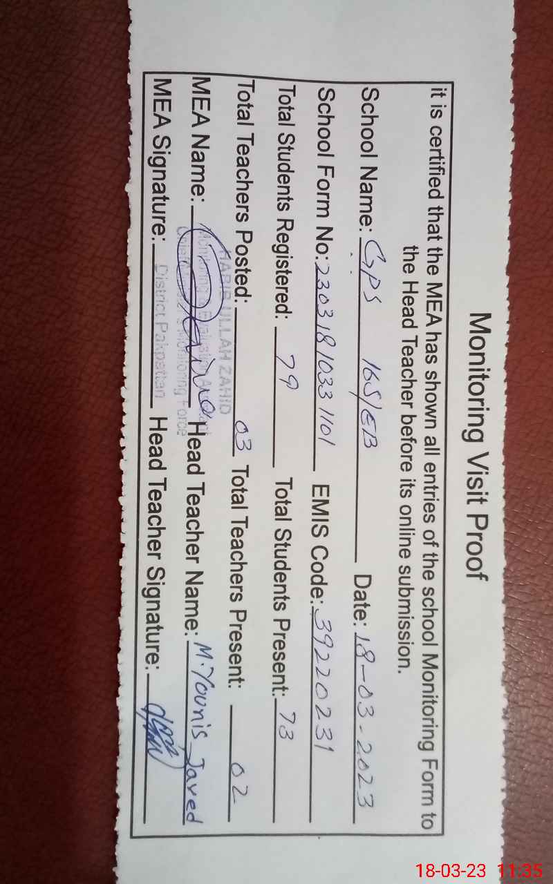 | EMIS Code: 39220231 | Name of School: GPS 165 EB P.O 163 E.B ARIF WALA | |||