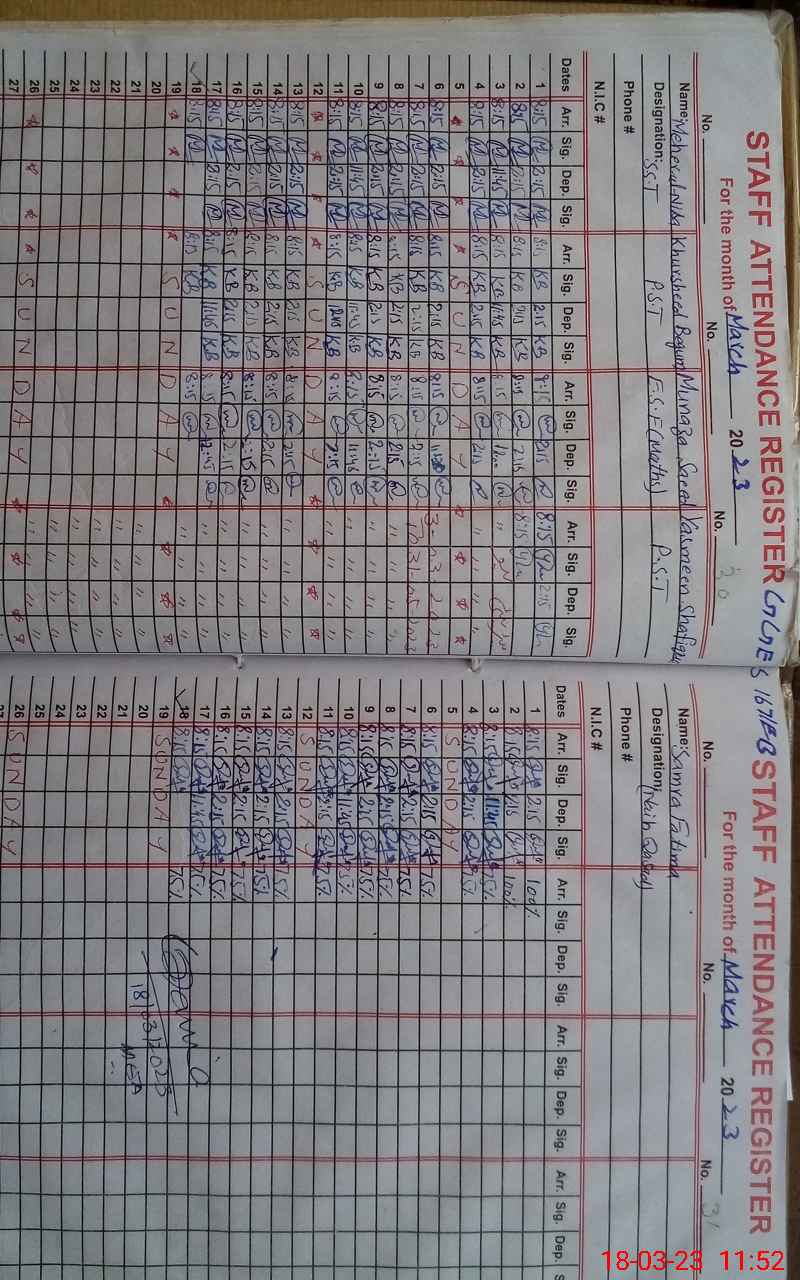 | Name: KH**** BE**** Designation: (School Headmaster's/Headmistress's) PST Phone/Cell Number: 03**** |