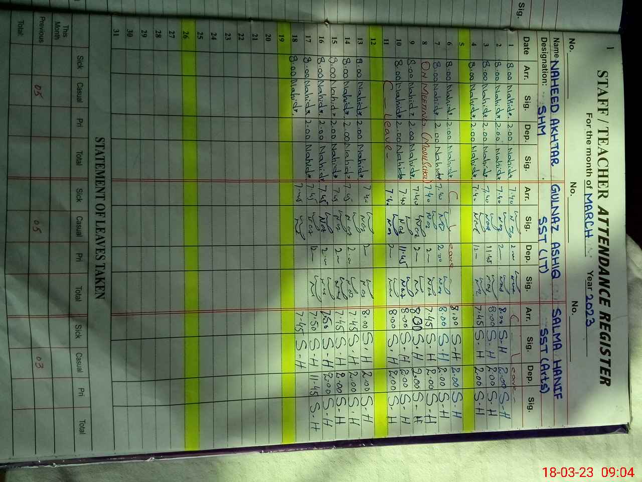| CNIC | Full Name | Designation | R/C | Absence During Last Calender Month |