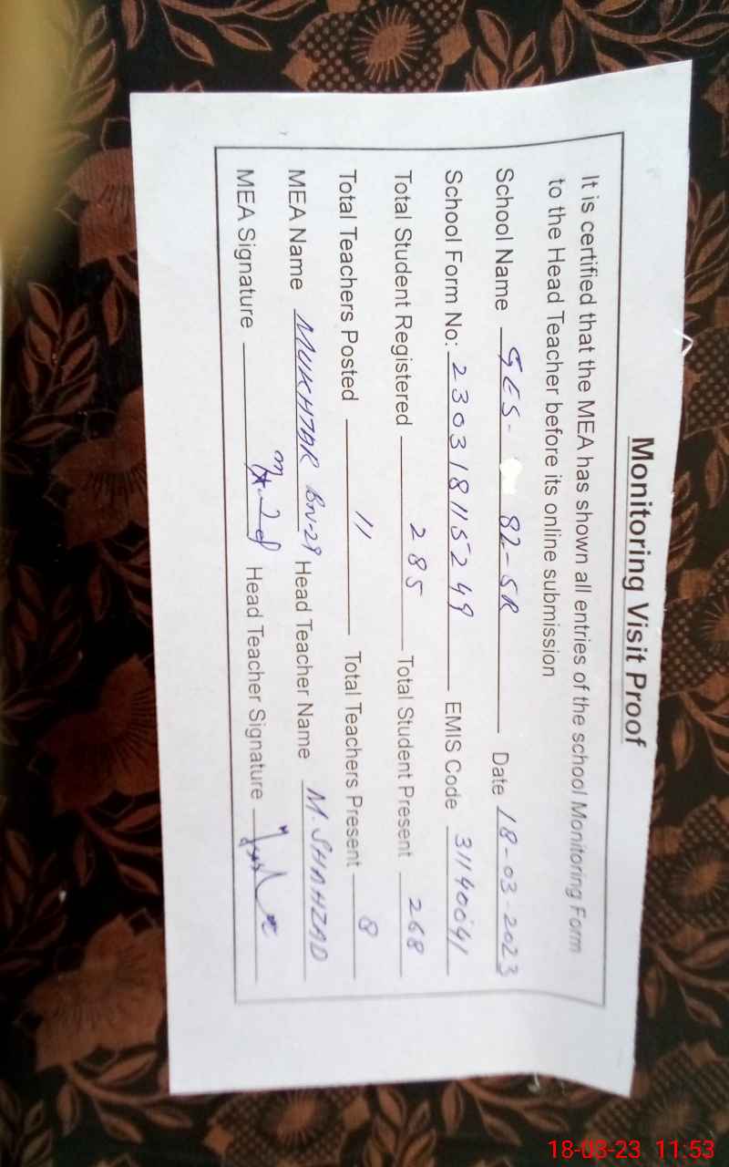 | EMIS Code: 31140041 | Name of School: GES CHAK 82/5-R | |||