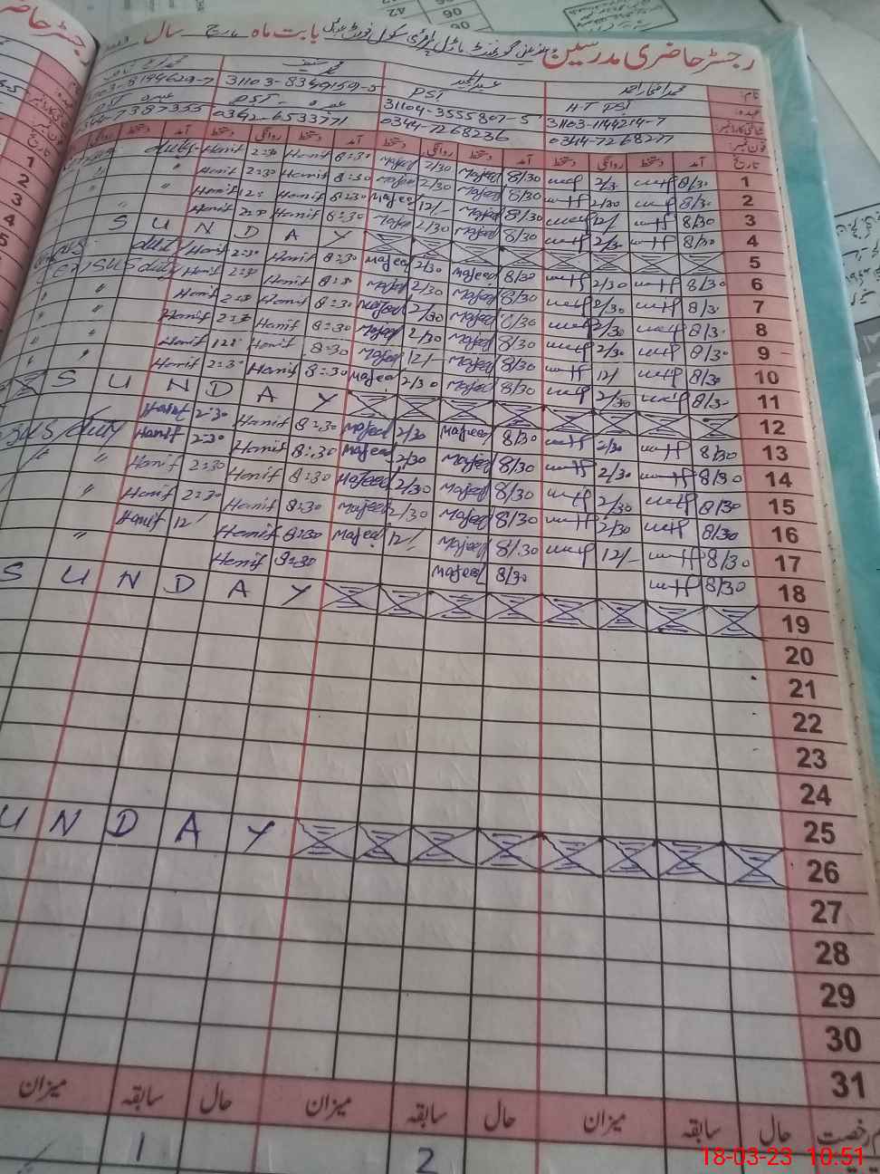 | Name: MU**** IF**** Designation: (School Headmaster's/Headmistress's) PST Phone/Cell Number: 03**** |