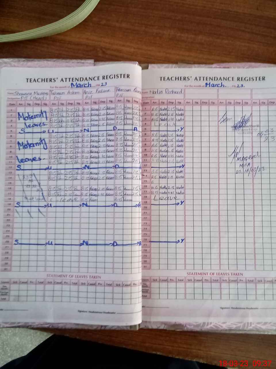 | 32**** | Sh**** Mu**** | PST | Regular | 0 | 0 | 0 | 0 | 0 | 0 | 0 | 0 | 0 | Maternity |