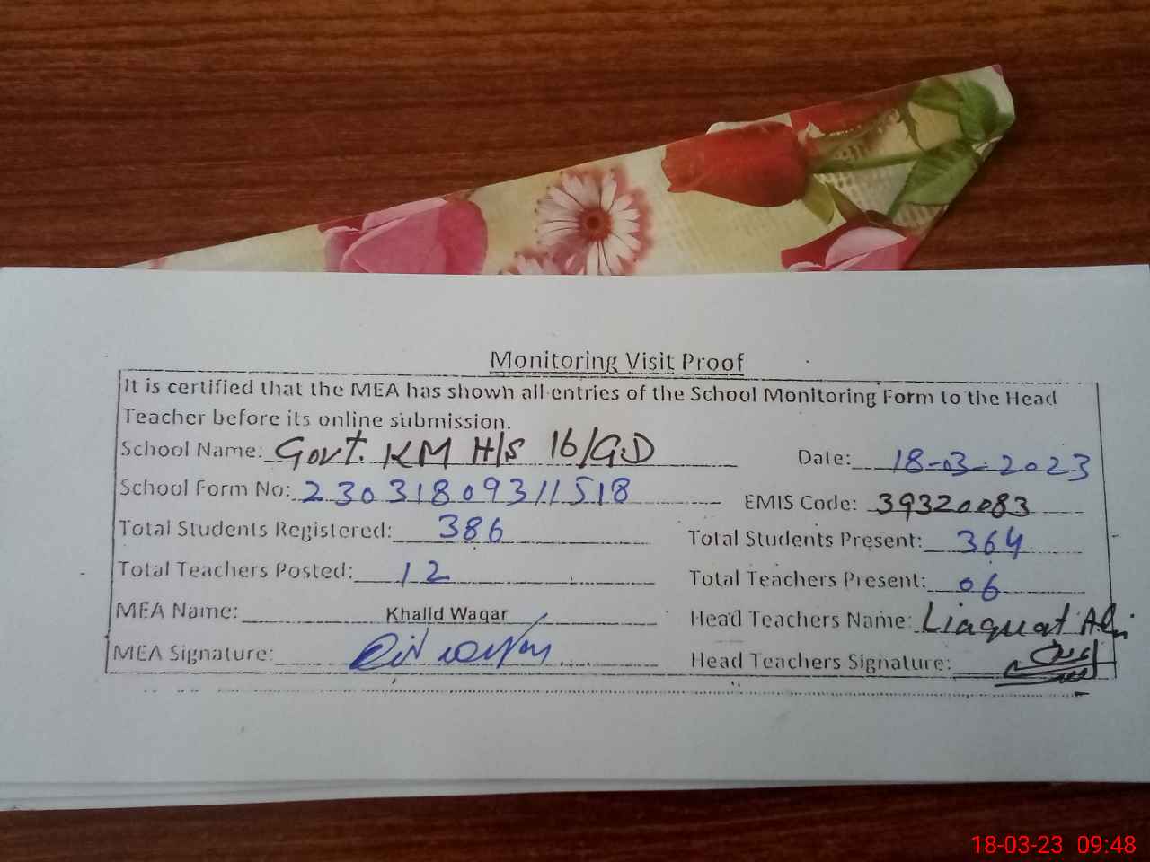 | EMIS Code: 39320083 | Name of School: GHS KHUSHI MUHAMMAD 16/GD | |||