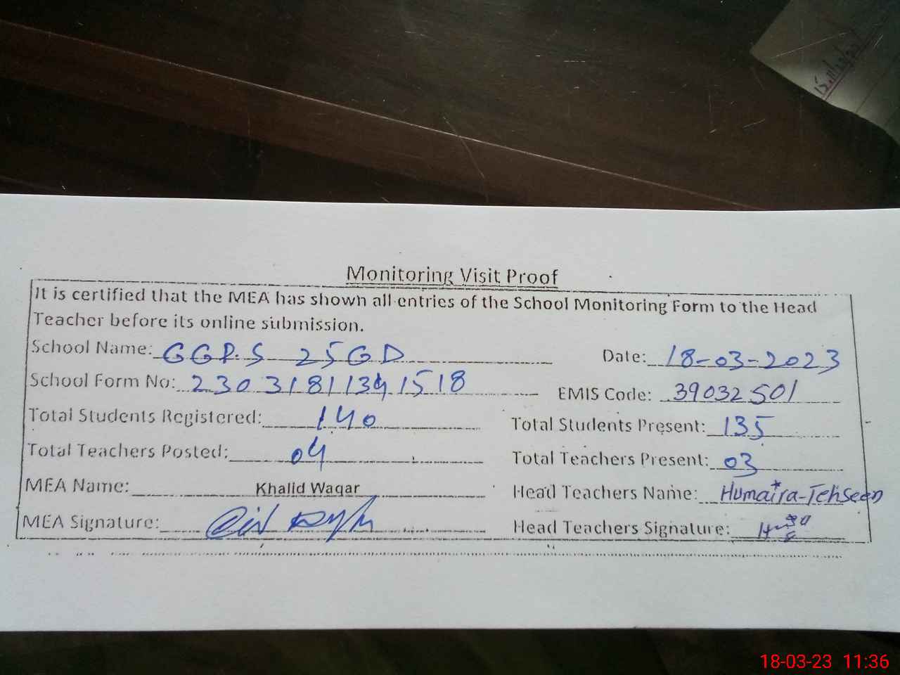 | EMIS Code: 39320501 | Name of School: GGPS 25/G.D | |||