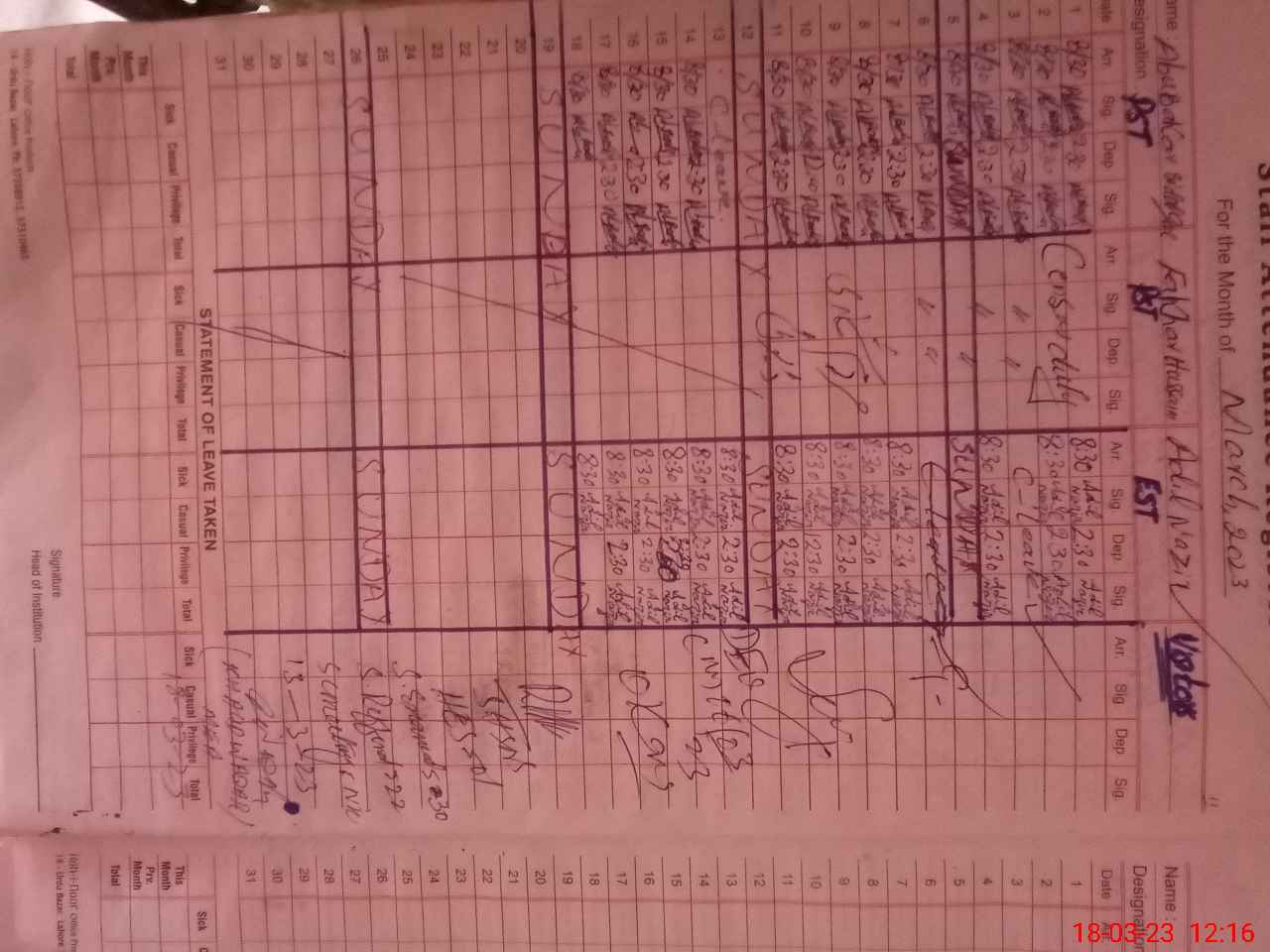 | Name: Ab**** Si**** Designation: (School Headmaster's/Headmistress's) PST Phone/Cell Number: 03**** |
