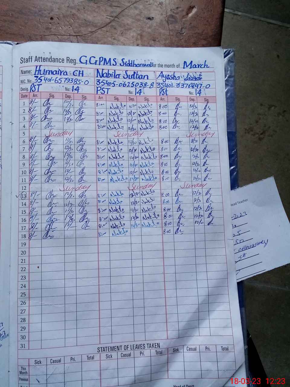 | Name: HU**** CH**** Designation: (School Headmaster's/Headmistress's) PST Phone/Cell Number: 03**** |
