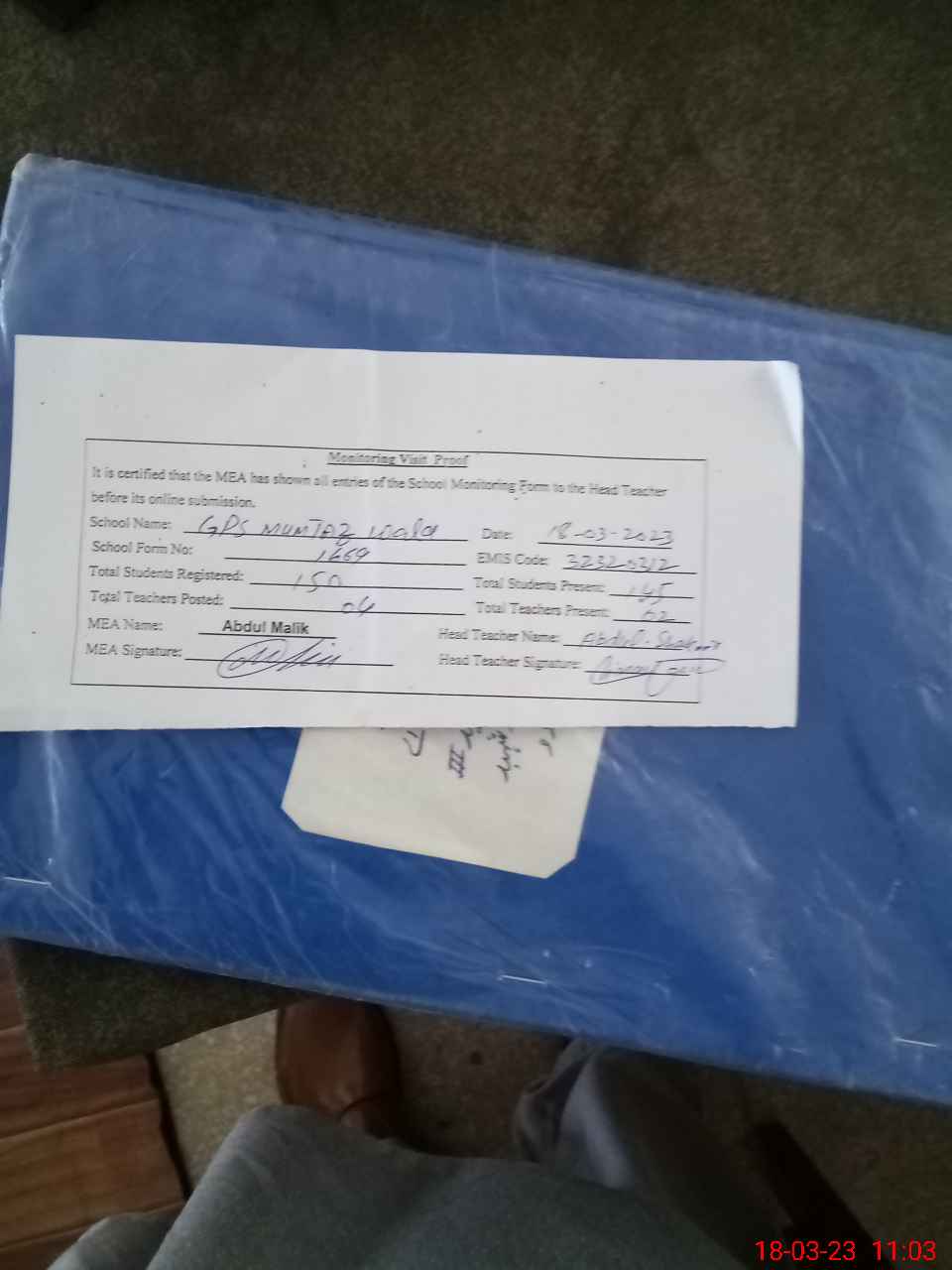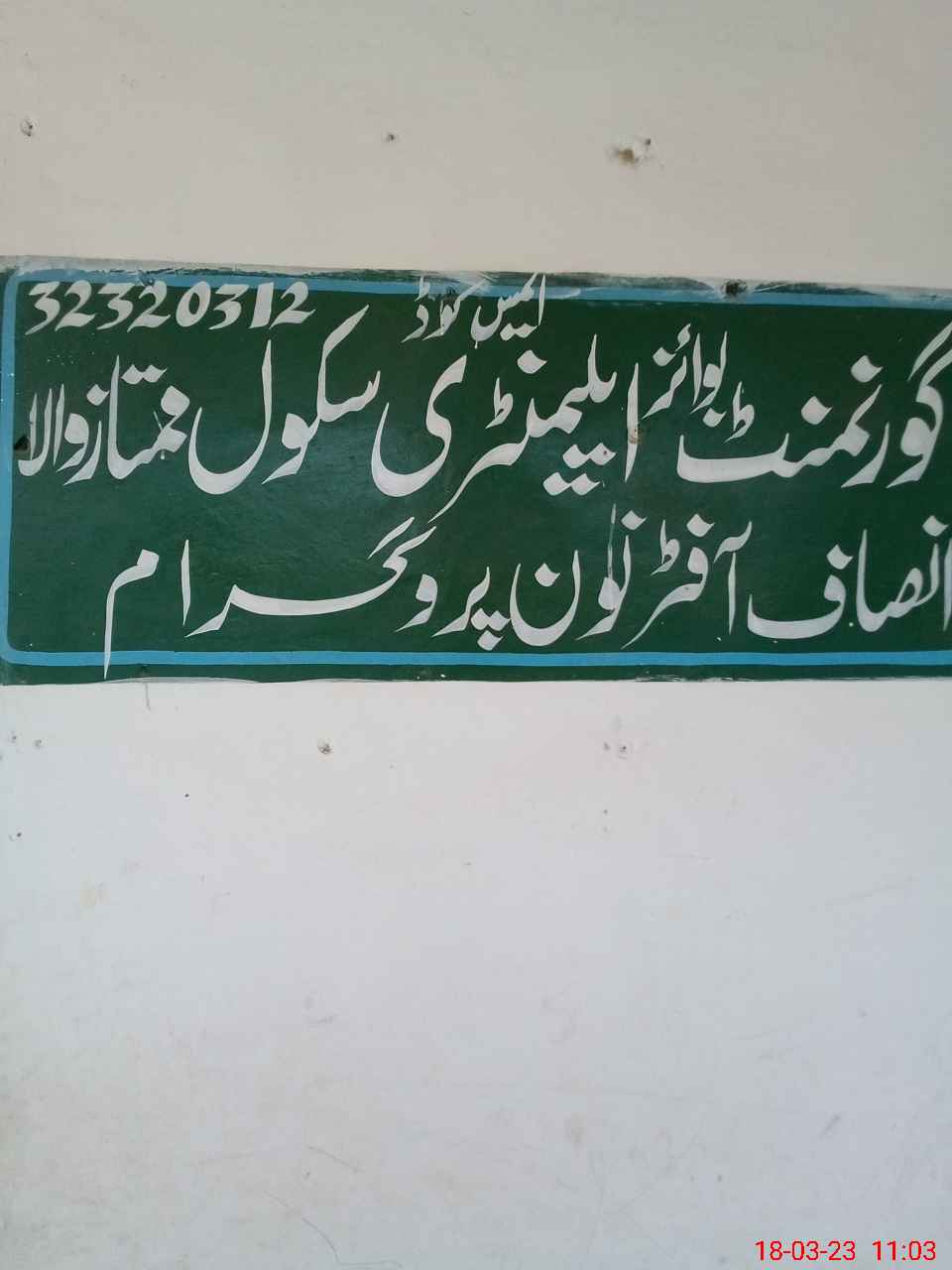 | EMIS Code: 32320312 | Name of School: GPS MUMTAZ WALA | |||